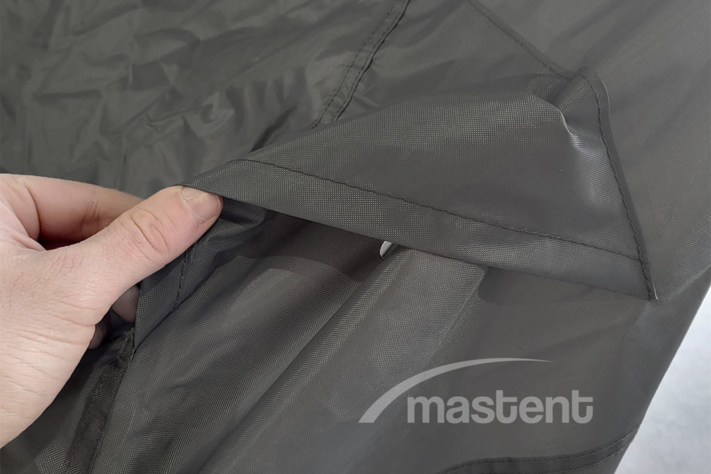 Ткань: Oxford 300D с внутренним полиуретановым слоем, не пропускающим воду. Характеристики: влагостойкость до 1500 мм водяного столба, рабочая температура до -50°C, термостойкость нижней зоны до +180°C, верхней части до +80°C.