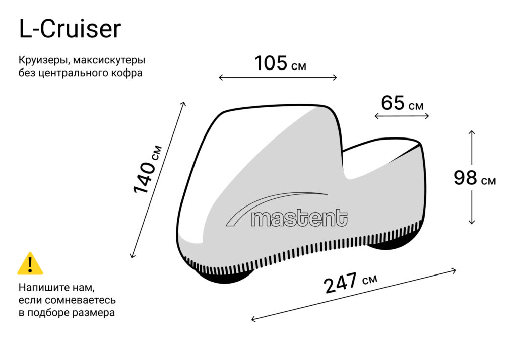 Чехол-тент Mastent для мотоциклов (модель L-Cruiser) создан специально для защиты мотоциклов категорий круизер и макси-скутер при хранении на улице или в помещении (гараже).
